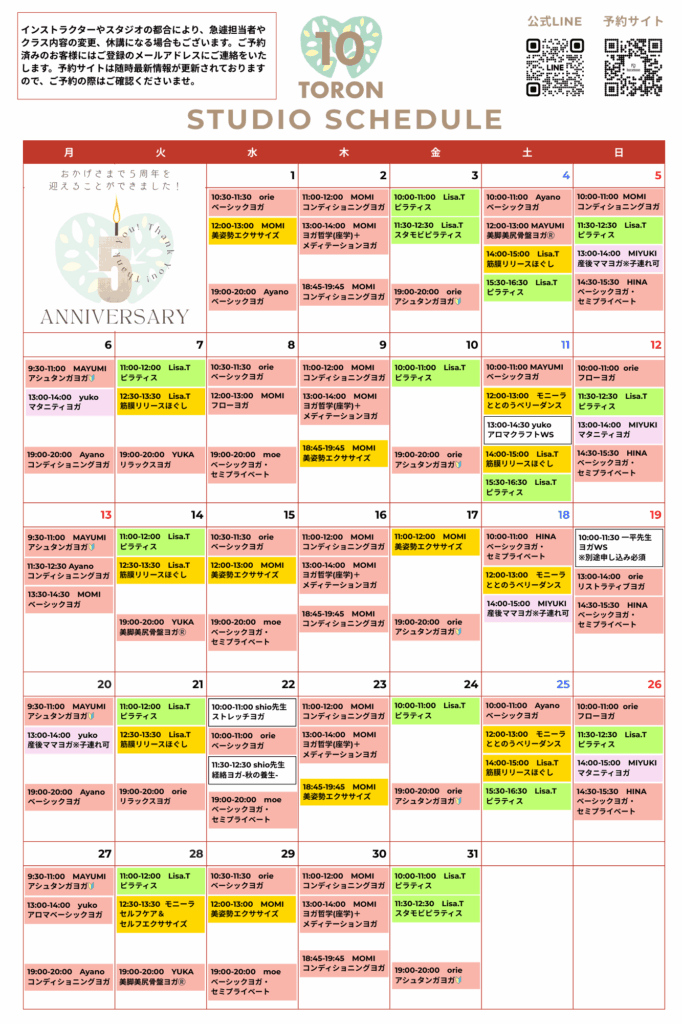 【10月スケジュール公開】🎉5周年の感謝を込めて、秋を彩るスタジオプログラム